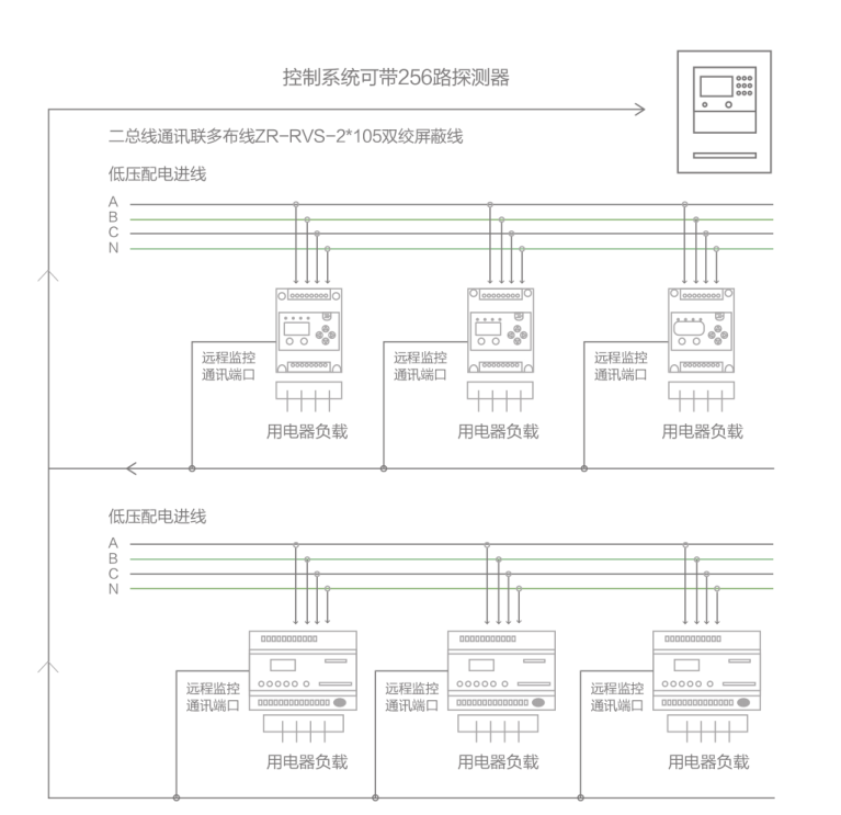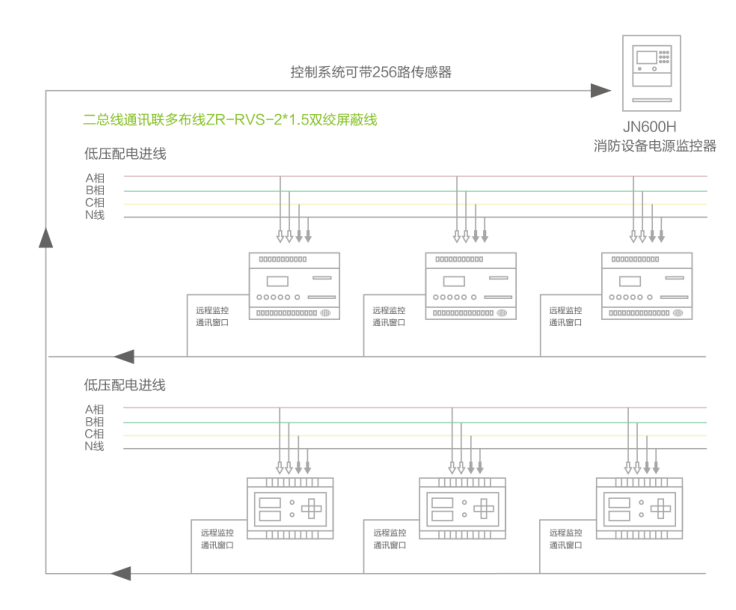 ▲消防設(shè)備電源監(jiān)控系統(tǒng)接線圖