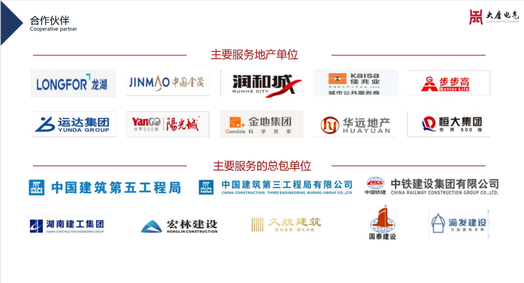 在公司“誠信、務(wù)實、精進、共贏”的企業(yè)核心價值觀的引導下,我們已與恒大地產(chǎn)、金茂地產(chǎn)、龍湖地產(chǎn)、旭輝地產(chǎn)、佳兆業(yè)地產(chǎn)、榮盛地產(chǎn)、保利地產(chǎn)、華遠地產(chǎn)、萬達廣場、步步高商業(yè)等開展了長期的深度合作,并承接了國家、省政府等重點項目,如機場、軌道交通、醫(yī)院、大中院校等。優(yōu)質(zhì)的產(chǎn)品保障、完善的服務(wù)體系100%的消防驗收通過率使湖南大唐電氣贏得了全國客戶的贊譽。